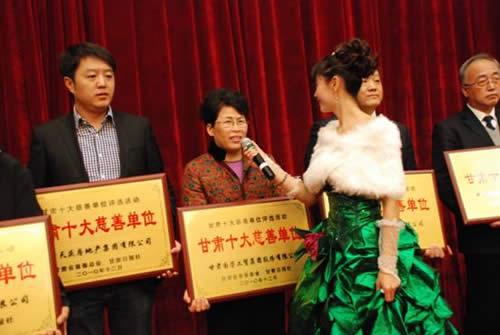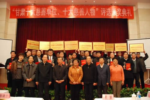 由甘肅省慈善總會(huì)和甘肅日報(bào)社聯(lián)合主辦、每日甘肅網(wǎng)獨(dú)家承辦的2010年甘肅省十大“慈善單位”、“慈善人物”頒獎(jiǎng)典禮于2010年12月28日在蘭州舉行。經(jīng)過激烈角逐,甘肅國芳工貿(mào)集團(tuán)股份有限公司榮幸地被評(píng)為“甘肅十大慈善單位”之一。