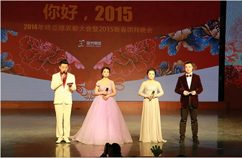 2015年2月9日晚,在蘭州37中(蘭州女子專業(yè)中等?茖W(xué)校)5樓藝術(shù)廳內(nèi),國(guó)芳集團(tuán)“你好,2015”2014年終總結(jié)表彰大會(huì)暨2015年新年盛典溫馨開演。恰逢國(guó)芳集團(tuán)成立十五周年,晚會(huì)現(xiàn)場(chǎng)充滿了溫馨、喜慶和感動(dòng)。晚會(huì)延用了去年的大型LED顯示屏、多組VCR、微信平臺(tái)等廣受好評(píng)的元素,并創(chuàng)新的融入了中華名族傳統(tǒng)的禮儀文化,漢唐古典舞的壯觀優(yōu)美,員工孩子們《弟子規(guī)》的可愛表演,都在為晚會(huì)添加了精彩度的同時(shí),將傳承禮儀所需要的高尚美德這一思想深入的傳達(dá)到每一位員工的心中。員工們精心準(zhǔn)備的節(jié)目一個(gè)比一個(gè)精彩,極具藝術(shù)表現(xiàn)力和觀賞性,董事長(zhǎng)也被熱烈的氣氛所感染,親自上臺(tái)演唱了兩首歌曲,把晚會(huì)推向了高潮。最后,國(guó)芳集團(tuán)年終晚會(huì)在祥和熱烈的氣氛中落下了帷幕。讓我們共同期待來(lái)年的精彩!