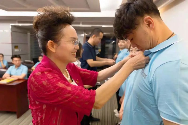 在儀式接近尾聲時,國芳集團的管理干部為我們新一屆的管理培訓(xùn)生佩戴工卡,從此刻開始,國芳集團又加入了數(shù)十名新生力量。